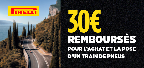 Jusqu'au 30.09 | Jusqu'à 30€ remboursés pour l'achat de pneus moto Pirelli. Excellence italienne et sportivité moto. Inscrivez-vous en ligne pour votre remboursement. ➞ Voir les conditions.