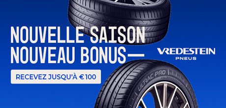 Jusqu'au 31.05 | Jusqu'à 100€ remboursés pour l'achat de 2 ou 4 pneus Vredestein. Cashback ou bon d'achat Amazon, Carrefour, Decathlon au choix. Qualité et confort premium récompensés ! ➞ Voir les conditions.